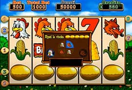 Fowl Play Gold игра сочетает в себе классическую графику, простое управление и увлекательный геймплей. Тема посвящена забавной курице, которая несёт золотые яйца. Сюжет является отсылкой к легендарному поэту Эзопу. Его басня отлично объясняет тематику аппарата и наталкивает на мысль, что у каждого есть шанс сорвать приличный куш.